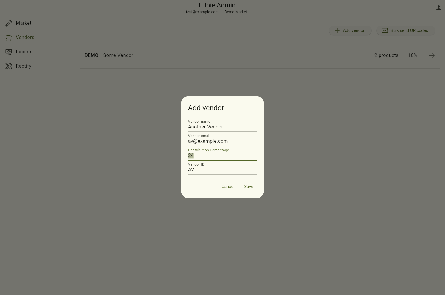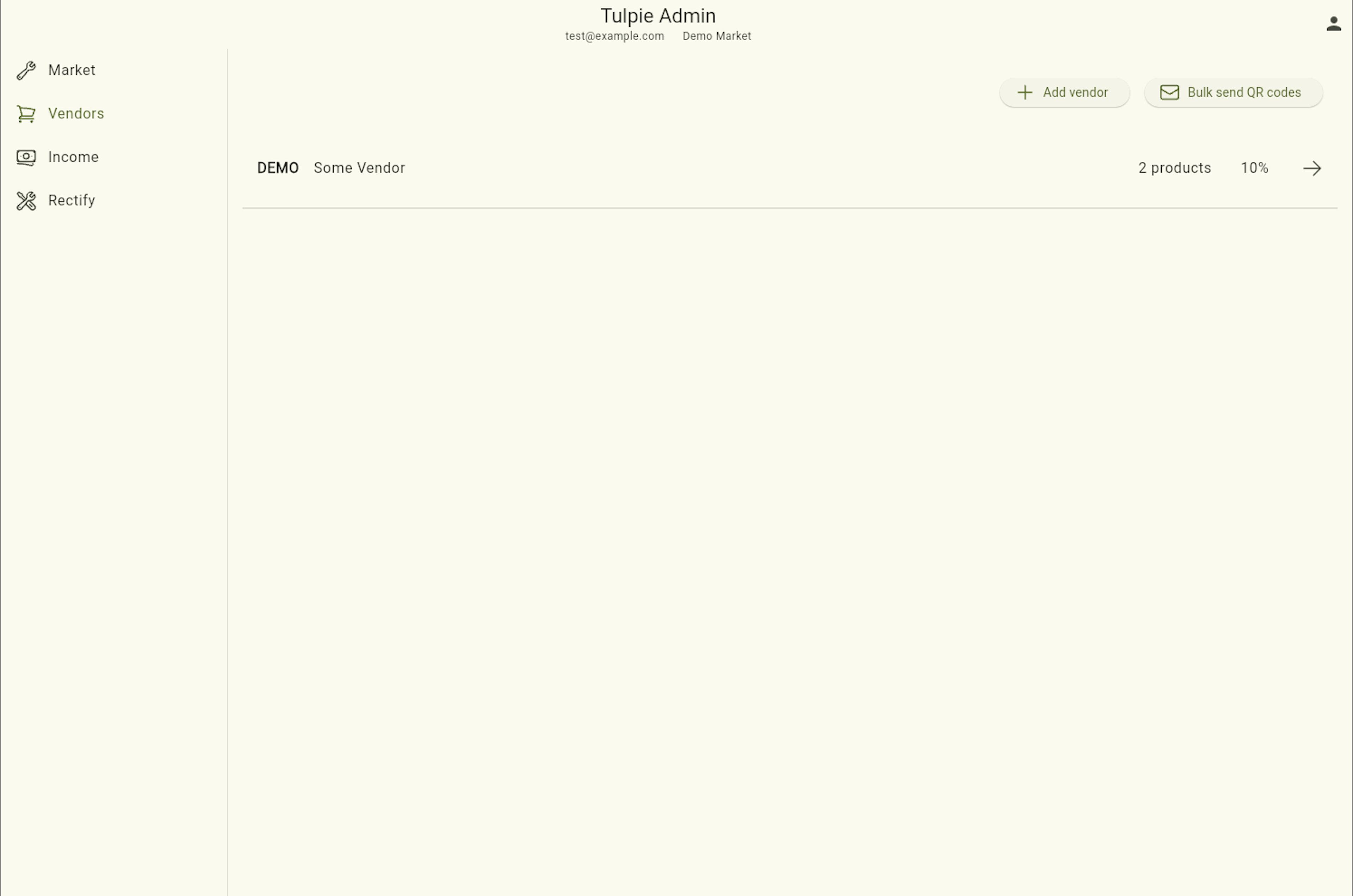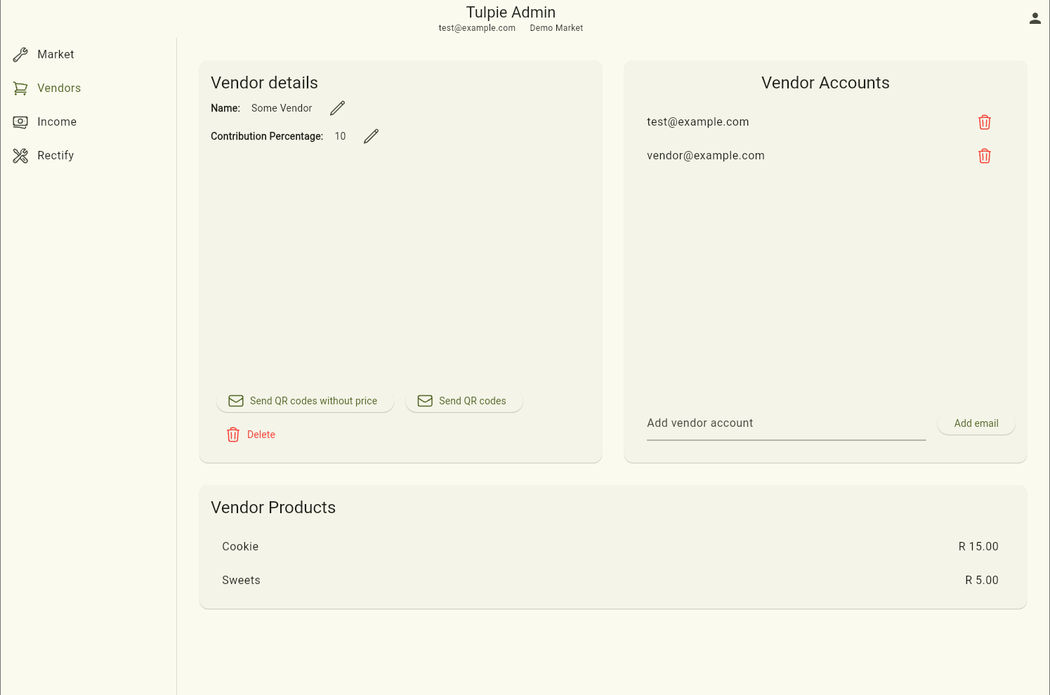 - Let the vendors email themselves the QR code labels they will need to sell at your market.
